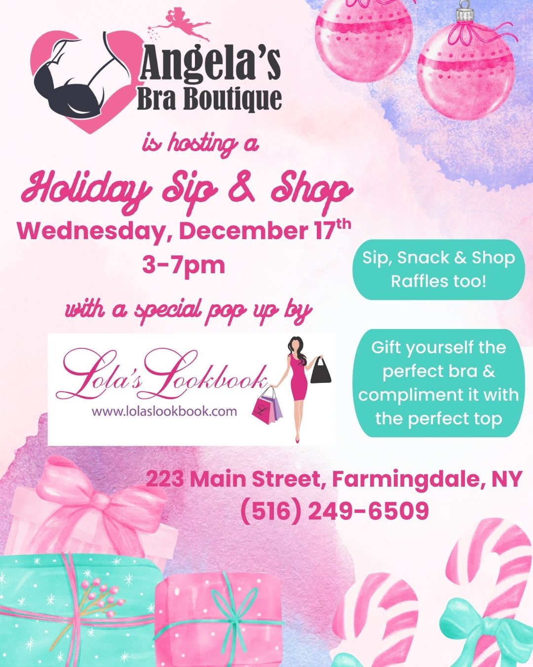 Angela's Bra Boutique 223 Main Street, Farmingdale, NY, United StatesSip, Shop, and Savor! Join us for a special afternoon featuring private wine tastings, shopping, custom fittings, and wine education with Fire Island Vines and 248 Boutique. Enjoy three wines served by a WSET-certified wine educator, and take your favorites home with you! Date: June 25th | Time: 6pm-8pm Call to reserve your spot: 516-249-6509